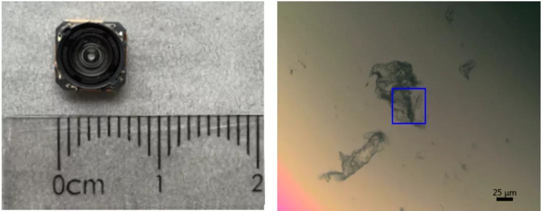 樣品1:手機(jī)鏡(jìng)頭上的白色異物。